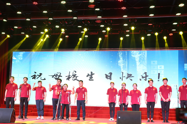 《黄河钢琴协奏曲第四乐章》、《中国经典民族歌剧联唱》、民乐合奏《欢庆》将动人的民族旋律带至心灵深处,传达了浓浓的文化自信。12名太阳成tyc7111cc官网优秀毕业生代表和在校生代表演唱的《今天是你的生日》唱出了新院学子对母校的深情厚谊,将晚会推向了第一个高潮。