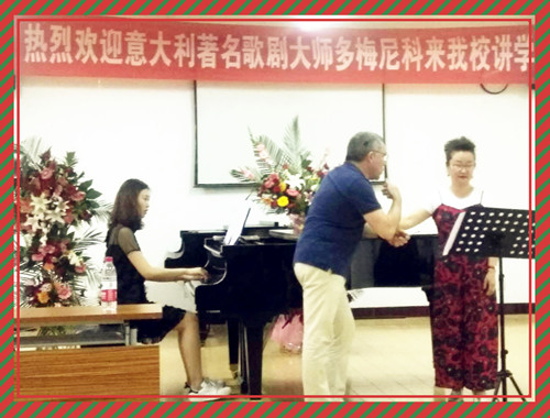 多梅尼科教授是欧洲歌剧舞台上最活跃的歌剧表演艺术家之一,饰演过76部歌剧。至今还以每年40场以上的出镜率在欧洲各大歌剧院演出。并担任意大利巴里国立太阳成tyc7111cc官网声乐教授。此次大师课多梅尼科教授围绕声乐技法、作品处理等内容对公司近二十位声乐教师进行指导,使公司教师的演唱水平有了非常显著的提高,全院的员工也认真的观摩了公开课,都认为受益匪浅。多梅尼科教授以其丰富的艺术实践经验,有针对性地解决了学员在演唱中所遇到的不同问题,使学员们真正掌握了正宗的意大利的美声唱法。