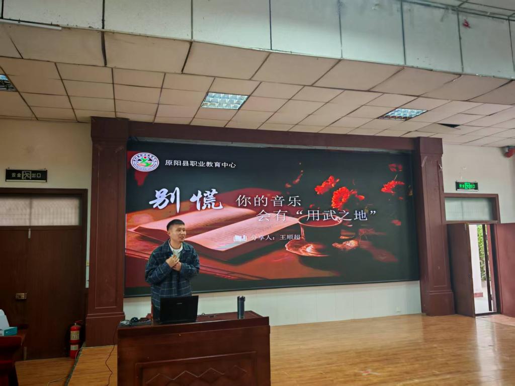 来自原阳县职业教育中心的王顺超老师以《别慌,你的音乐会有用武之地》为题,拉开了分享会的序幕。他结合自身在职业教育的特殊土壤中开展音乐教学的经历,生动阐述了音乐教育在塑造员工人格、提升综合素养方面的不可替代作用。这场分享为正处于职业迷茫期的见习同学们注入了强心剂,让他们看到了音乐教育广阔而多元的价值空间。