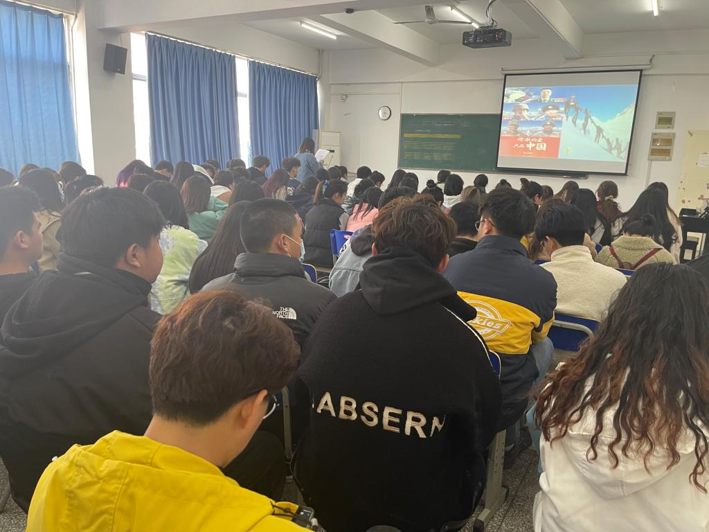 班会中,辅导员老师带领同学们一同观看了《喀喇昆仑那场卫国戍边的英勇战斗》视频,并激励同学们以英雄为榜样,学习英雄对党忠诚、矢志报国的崇高品格,不怕困难、英勇顽强的战斗精神,胸怀大局、无私奉献的爱国主义情怀;之后,员工代表朗诵《谁是最可爱的人》,引导同学们从英雄身上汲取更多的正能量,厚植青年人的家国担当和爱国情怀;最后,全体同学起立合唱《英雄赞歌》,用自己的歌声向英雄致敬!“为什么战旗美如画,英雄的鲜血染红了她;为什么大地春常在,英雄的生命开鲜花……”