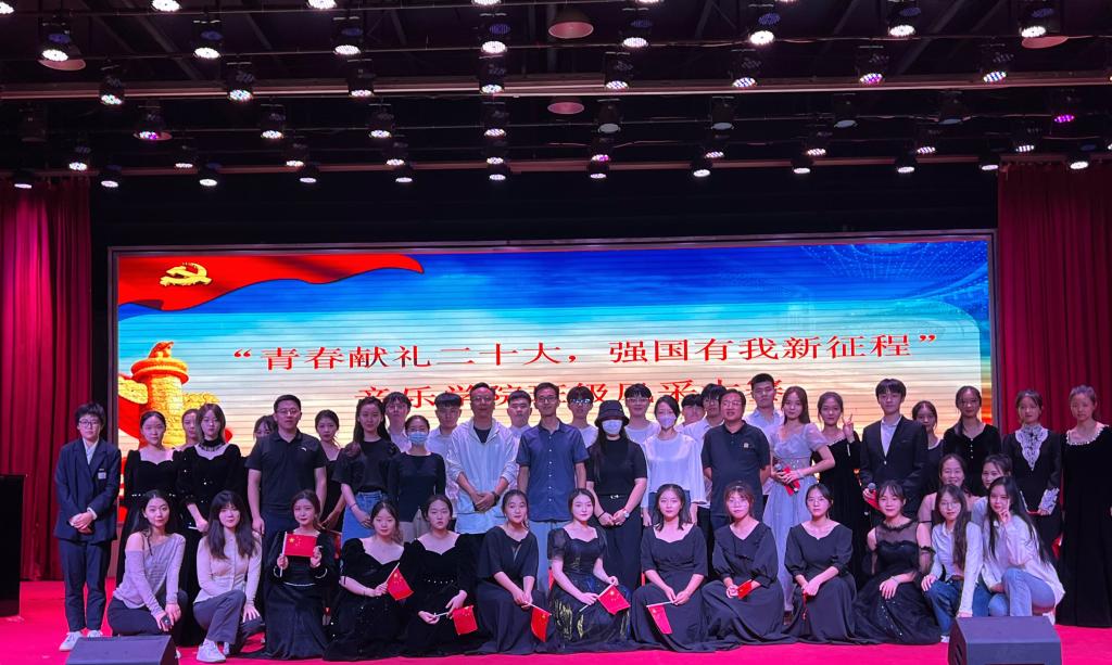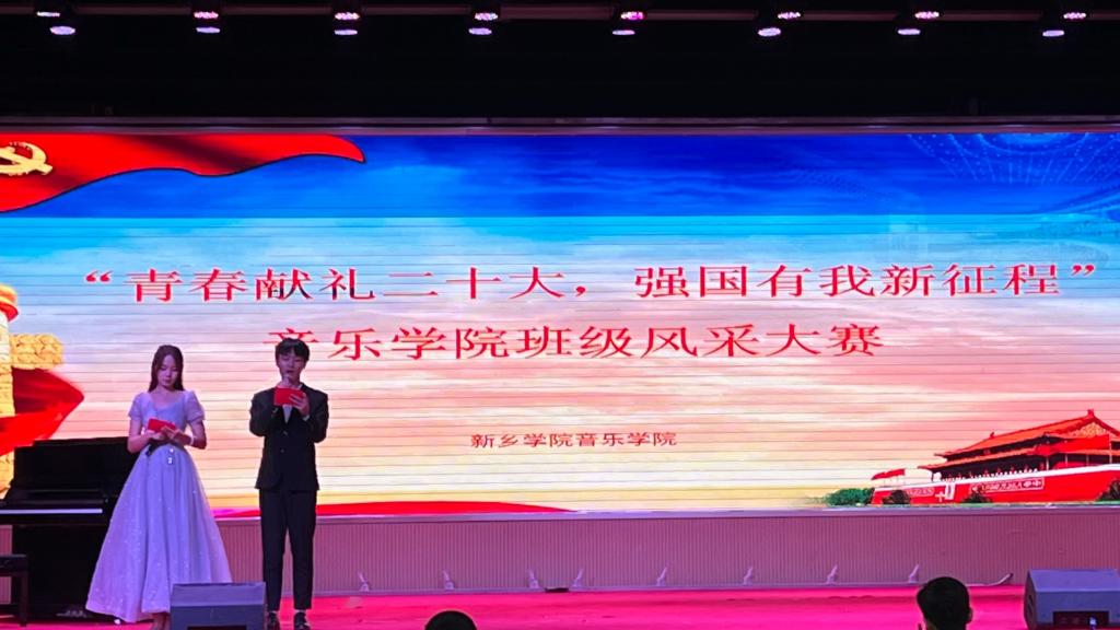 9月30日晚,2020级音乐学2班在西区多功能厅举办了第一场“献礼二十大,音你而来”主题晚会,并通过抖音平台进行线上直播。晚会在全班同学的合唱声中拉开序幕。历史情景剧《典故中的惊世之美》与器乐重奏《青花瓷》尽显国风古韵之美,二胡独奏《赛马》澎湃激昂,民谣弹唱《关于郑州的记忆》温情荡漾,小品《开仓放粮》重温艰苦岁月,让人笑中带泪。歌曲《再一次出发》和说唱《Hey,Kong》一个端庄温婉,一个轻快活泼,不同的方式表达着相同的追求和理想。舞蹈串烧绚烂欢腾,将整场晚会的气氛推向高潮,晚会最后,《七子之歌》的美妙旋律缓缓响起,晚会首尾呼应,在全班合唱中落下帷幕。