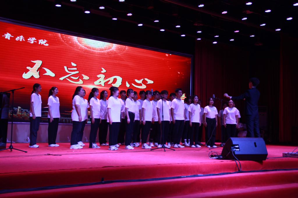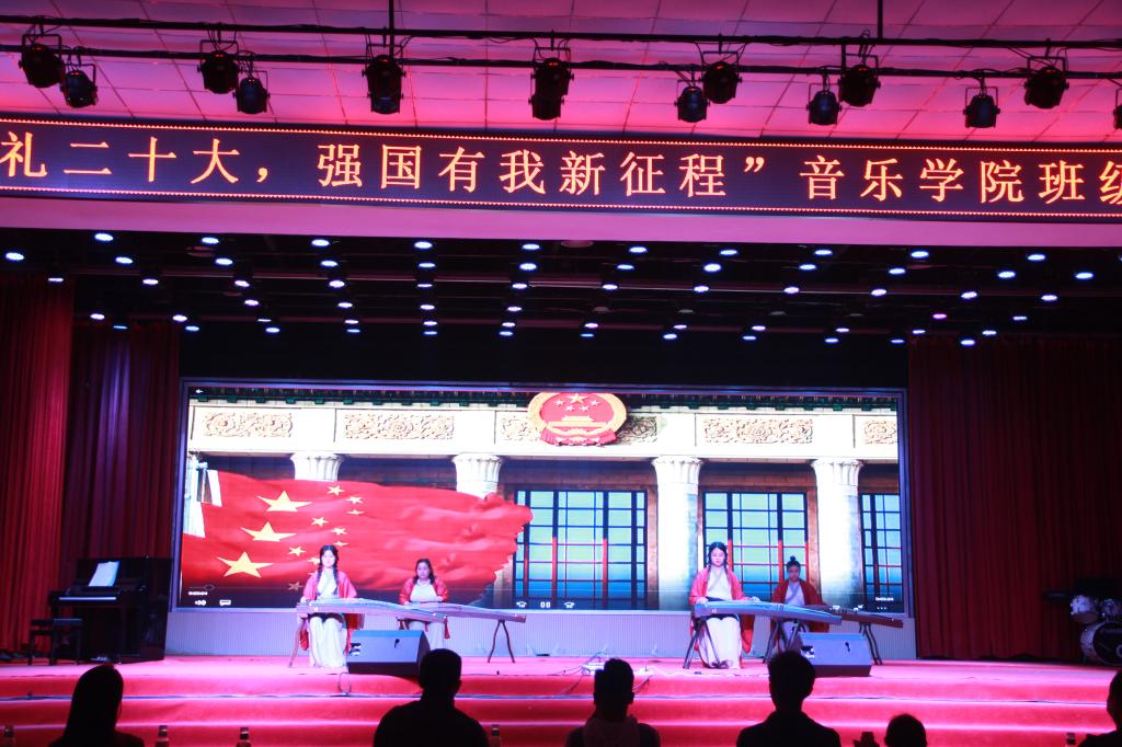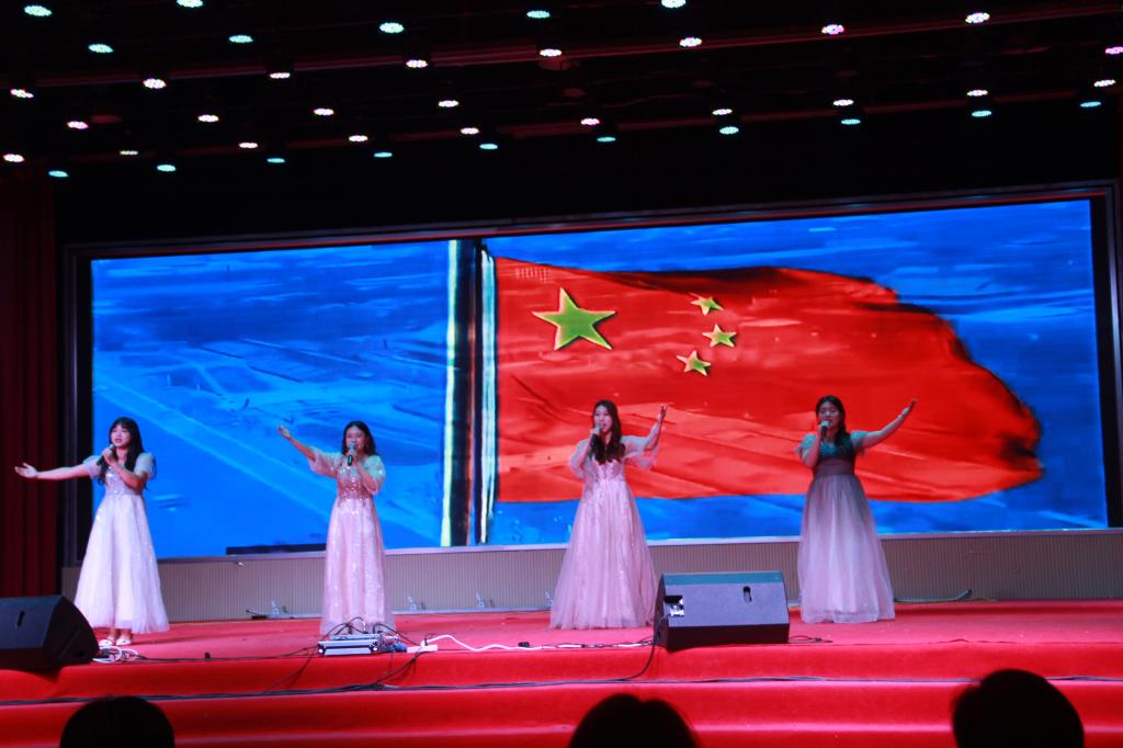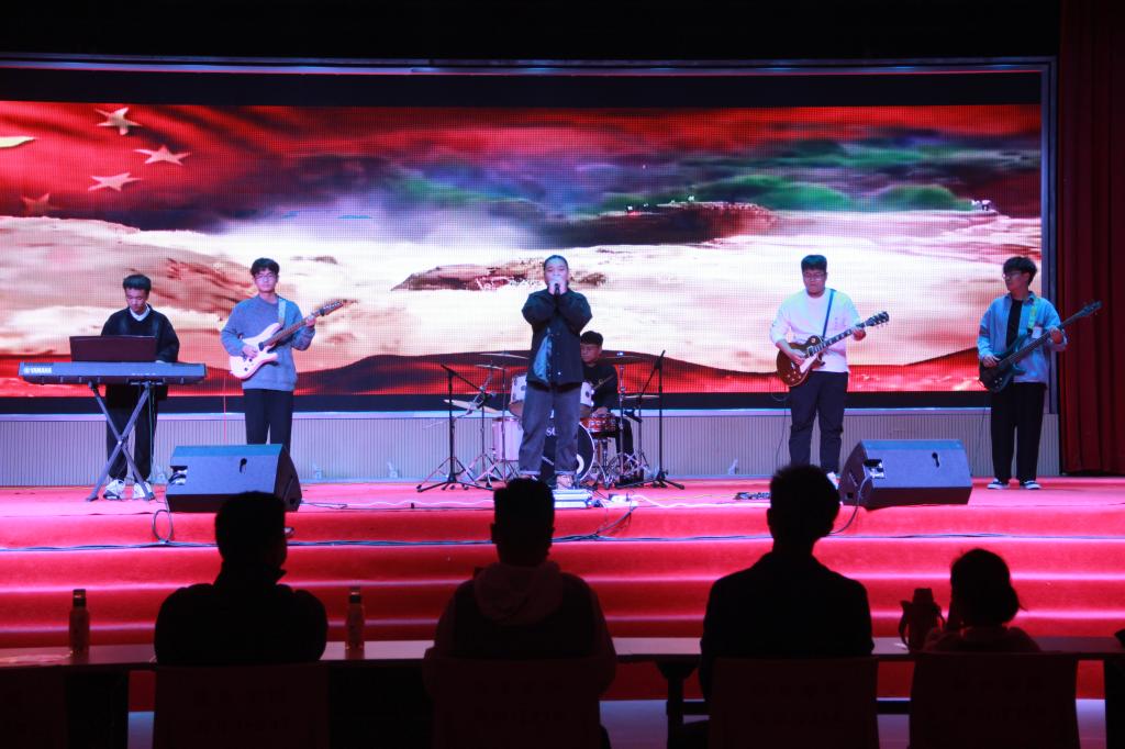 开场一首摇滚版《我爱你中国》燃爆全场,师生们心中澎湃的爱国之情瞬间被点燃。一曲《有我》唱出了一名老员工退伍士兵不负使命、勇往前行的强国之志。歌声、琴声、鼓声化作妙笔,描绘出《美丽中国》的大好河山,流淌的旋律谱写着中国共产党领导全国人民《共筑中国梦》的壮阔征程。一首《如愿》诉不尽我们对父辈的崇敬与感怀,道不完世代中华儿女的奋斗与传承。歌舞《一起向未来》挥洒着青春一代的开放与热爱,凝聚成世界各国同胞的团结与期待。“筝筝”日上奏响《盛世国乐》,款款深情诉说《往日时光》。《不忘初心》大合唱,晚会曲终情未央。