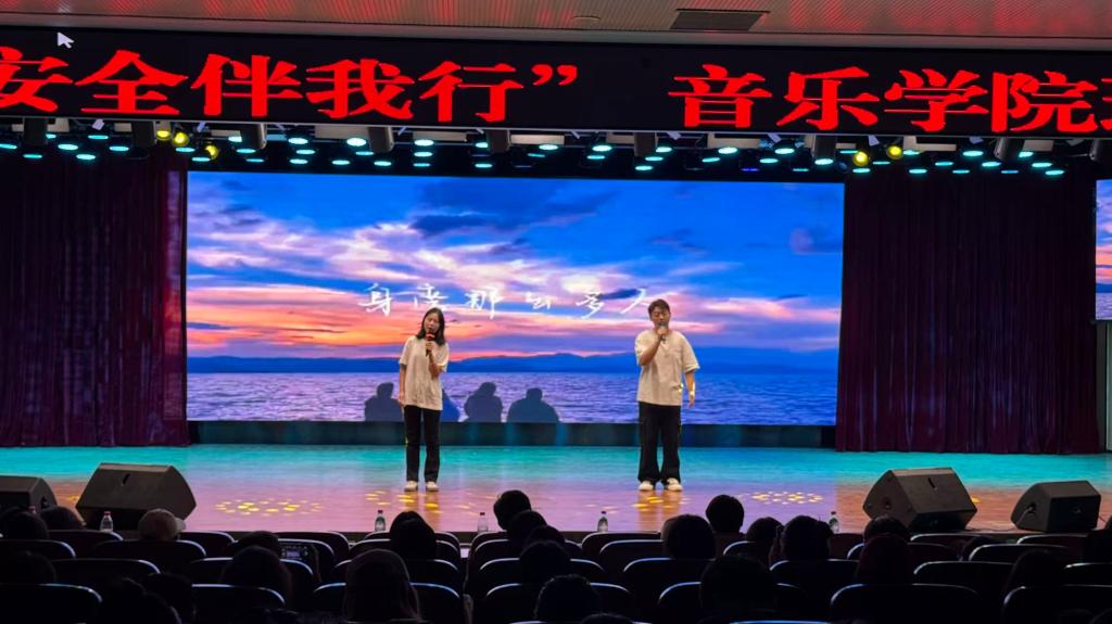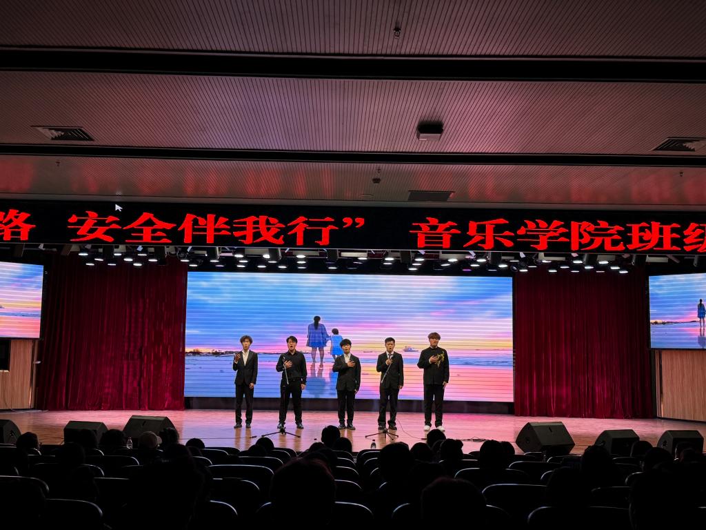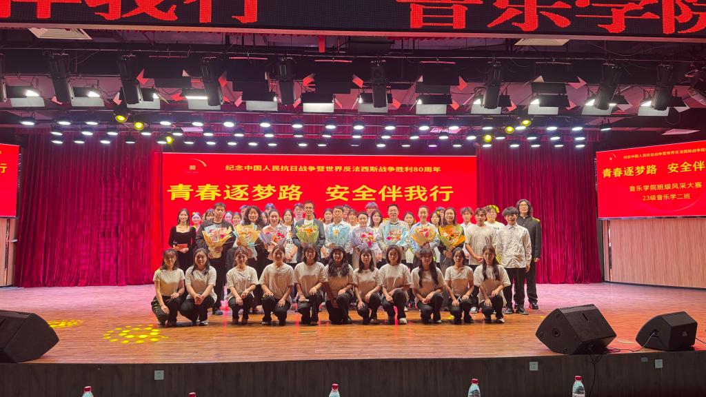 青春展风采,艺韵润初心。9 月 29 日下午 18:30,2023级音乐学2班于公司行政楼文化艺术中心举办"青春逐梦路,安全伴我行"班级风采大赛。公司班子成员、辅导员、员工代表共400余人到场观看。