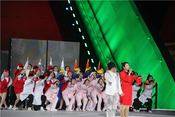 “歌声和汗水一路挥洒,中国梦的旗帜下再一次出发!追梦的人们雄姿英发,迎着万里长风再一次出发!”