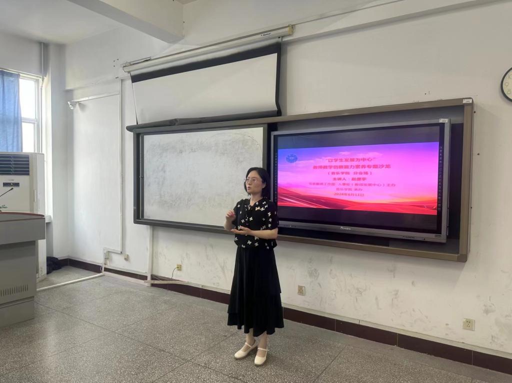 6月11日下午,公司举办了“以员工发展为中心”教师教学创新能力素养沙龙,公司青年教师和部分音乐学专业员工参加了此次活动。本次沙龙由党委教师工作部、人事处(教师发展中心)及教务处主办,太阳成tyc7111cc官网承办,公司副经理孙璟娜主持,教师赵偲宇担任主讲。