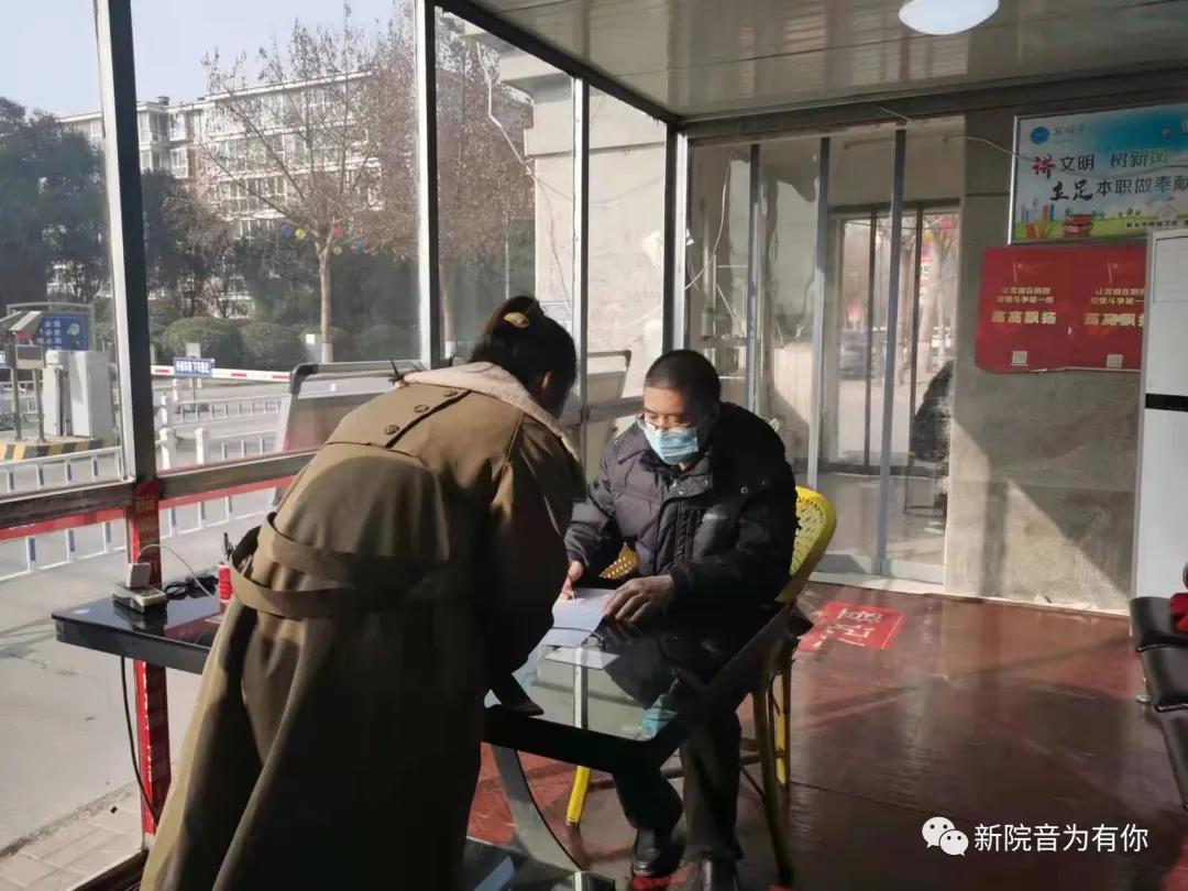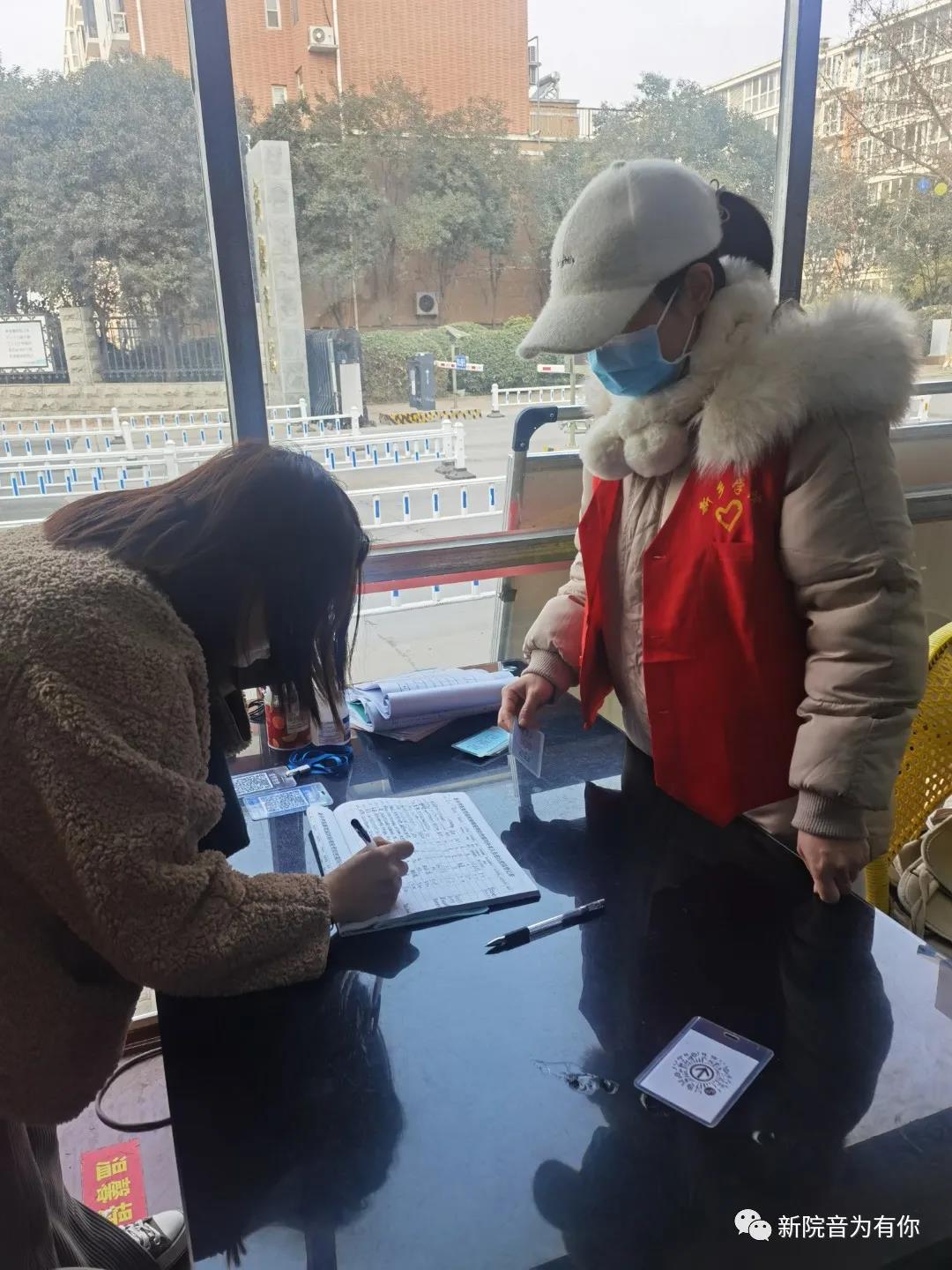 卡点值班老师对社区来往人员进行体温测量和信息登记,查验“双码”,并提醒居民出门戴好口罩、做好消毒工作。将疫情防控政策及防护知识及时传播到每家每户。