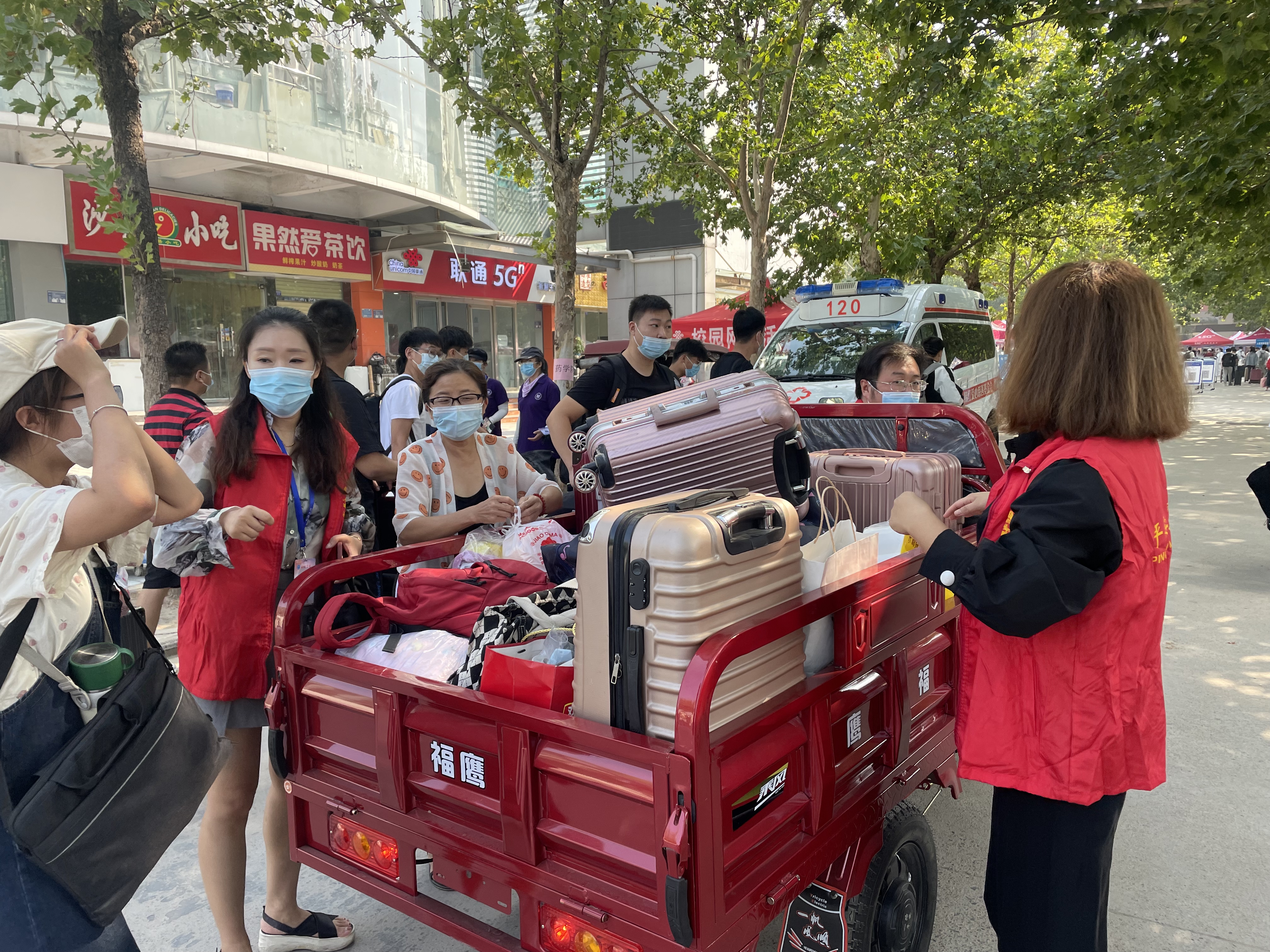 报到当天,公司党委书记梁记安、经理王风雷在迎新点迎接同学们的到来,各位教师志愿者提前到达约定的接应地点等候新生,引导他们进行入校身份核验、测温、行李消杀、扫场所码,进行核酸检测,前往食品发放点领取简餐,并帮助员工搬运行李到宿舍。在各位教师志愿者和值班点辅导员的引导和帮助下,各位新生顺利地完成各项报到流程并安全抵达宿舍。