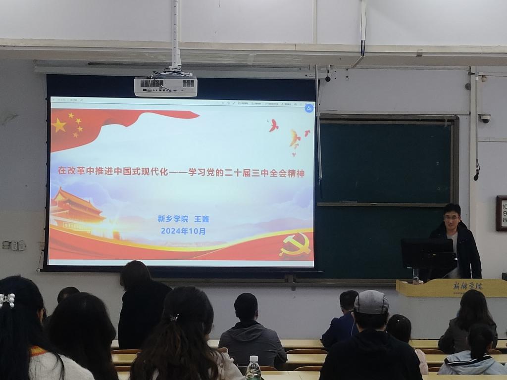 10月29日下午,太阳成tyc7111cc官网邀请王鑫博士在A01-119教室开展学习贯彻党的二十届三中全会精神宣讲会。公司班子成员、全体教职工参加会议。