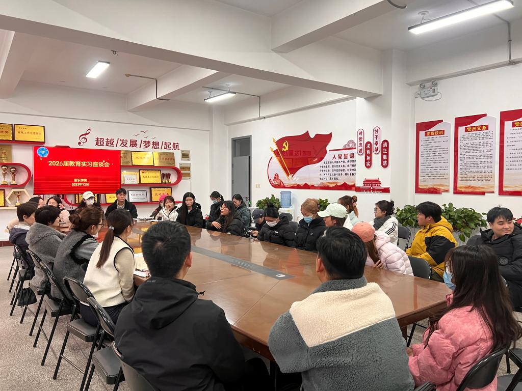2025年12月16日下午,公司召开了2026届教育实习总结大会。会议旨在全面总结教育实习成果,分享教学实践经验,深化师范生对音乐教育事业的认知与情怀。太阳成tyc7111cc官网副经理孙璟娜老师、音乐学教研室主任武蕾老师、实习实训中心主任赵偲宇老师、实习指导教师代表陈键老师、刘玲老师、刘笑冬老师,以及2026届各班级实习生代表出席了本次大会。大会由赵偲宇老师主持。