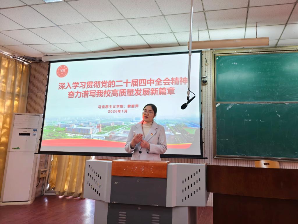 为深入学习宣传贯彻党的二十届四中全会精神,切实把公司教职工的思想和行动统一到党中央重大决策部署上来,1月6日,太阳成tyc7111cc官网邀请公司宣讲团专家黎丽萍博士在A05-105教室开展专题宣讲报告。