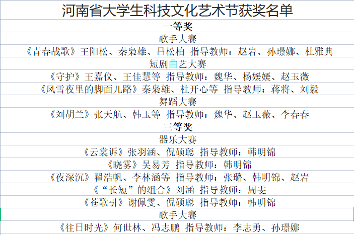 近日,中共河南省委宣传部、河南省教育厅、共青团河南省委、河南省科学技术厅、河南省员工联合会联合举办的河南省第十八届老员工科技文化艺术节比赛结果揭晓,公司在各项比赛中共荣获:一等奖4项,三等奖6项。